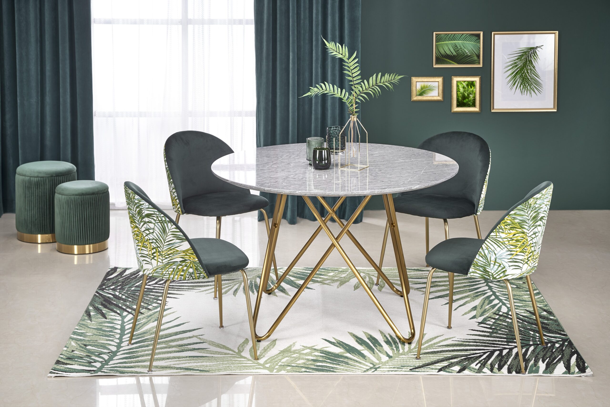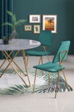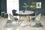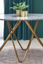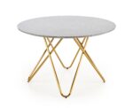 dimensions: o120/76 cm, material: laminated MDF / chrome steel, color: top – grey marble, legs – gold
