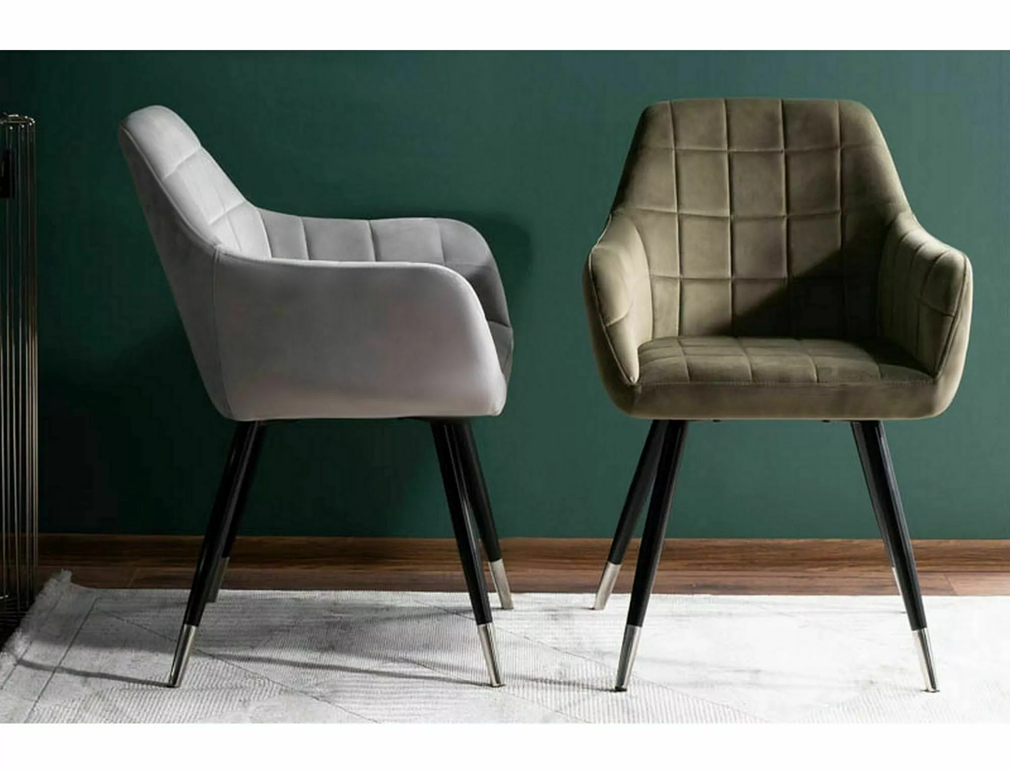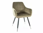 Chair, velvet fabric: Bluvel, color: olive 77 / metal. black matte + chrome.