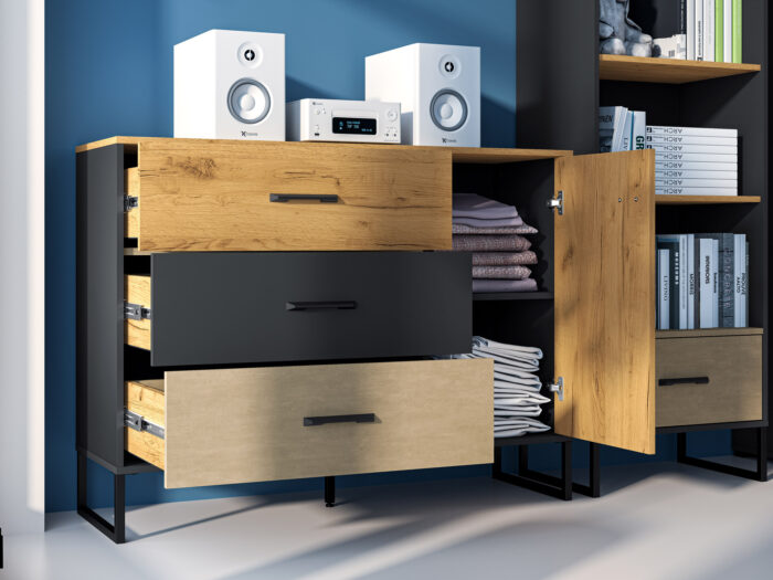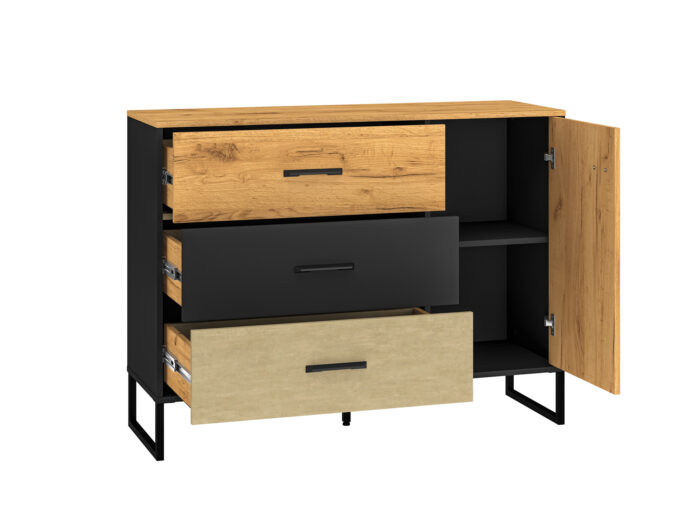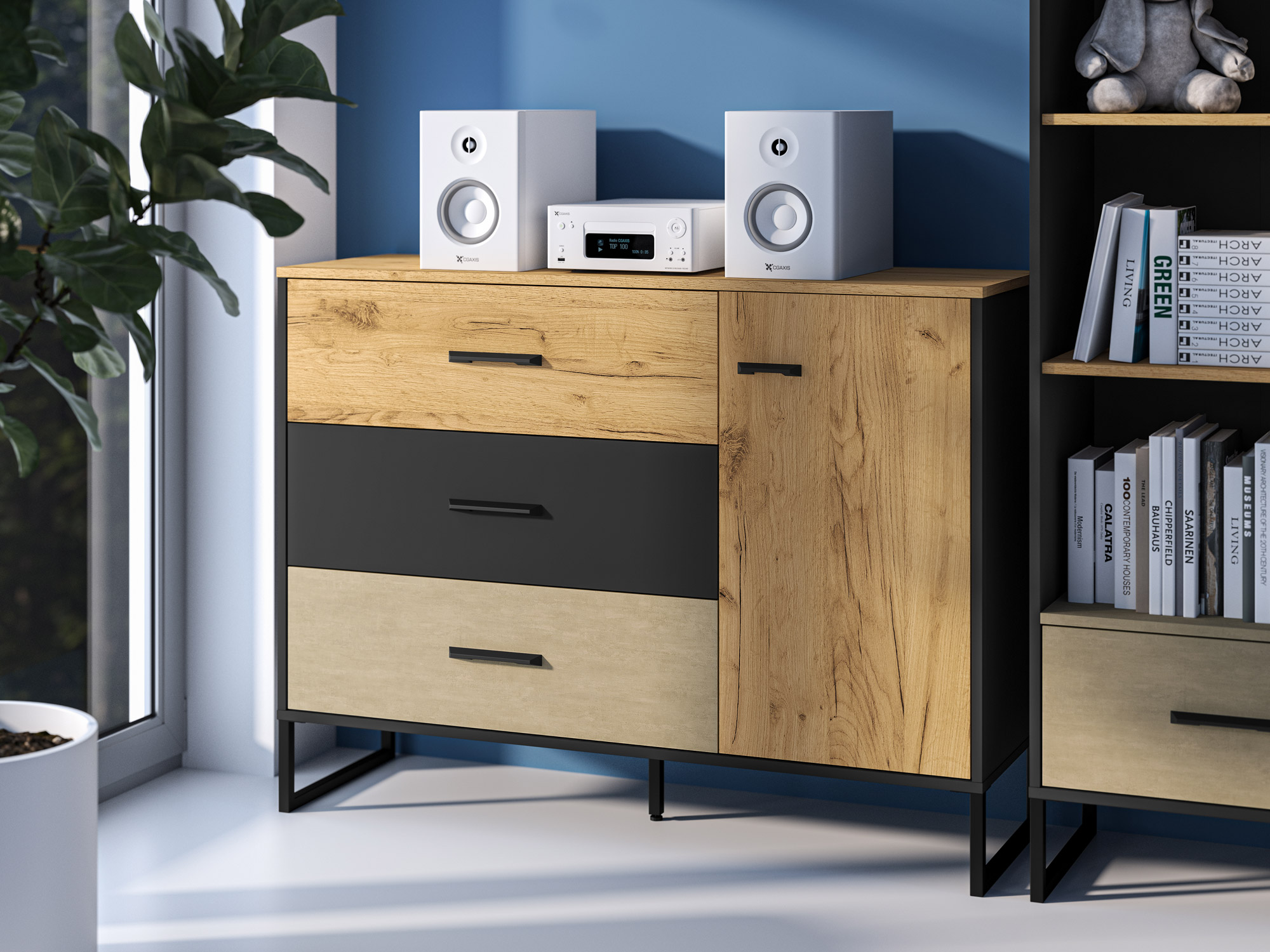 Colt 06 Oak craft gold/Black-Steel premium – chest of drawers 1D3S