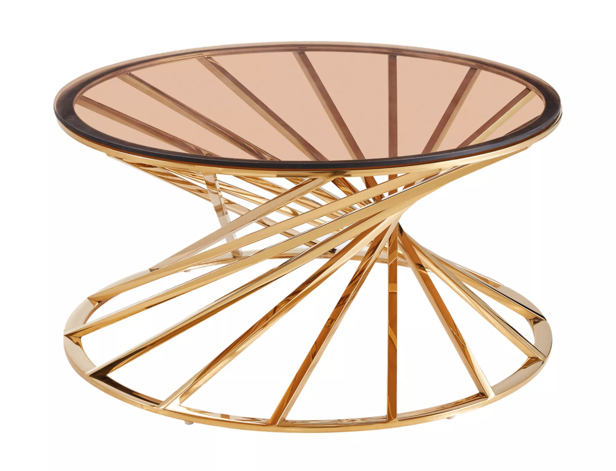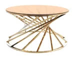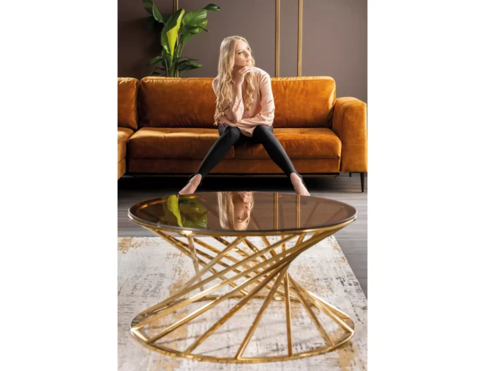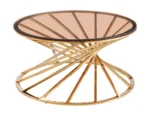 Coffee table, tabletop: amber tempered glass, frame: stainless steel, color: gold.