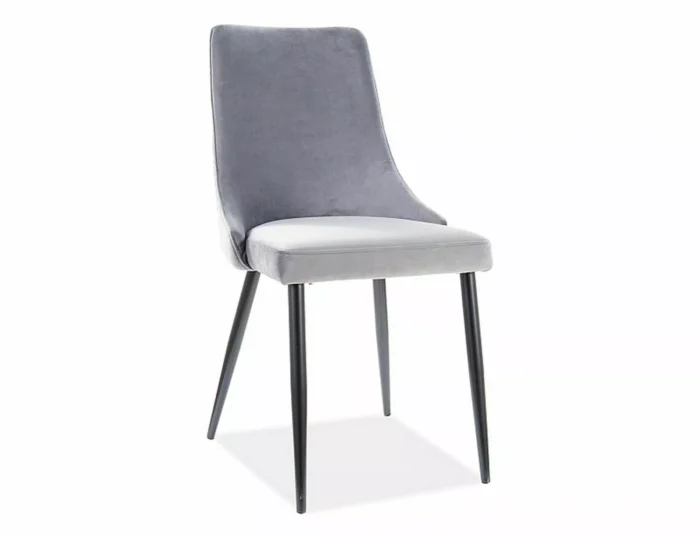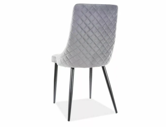 Chair, velvet fabric: Bluvel 14 – gray, frame: metal, color: matte black. The backrest has decorative diamond quilting.