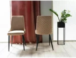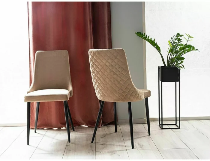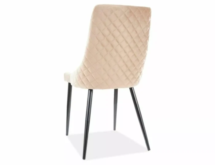 Chair, velvet fabric: Bluvel 28 – beige, frame: metal, color: matte black. The backrest has decorative diamond quilting.