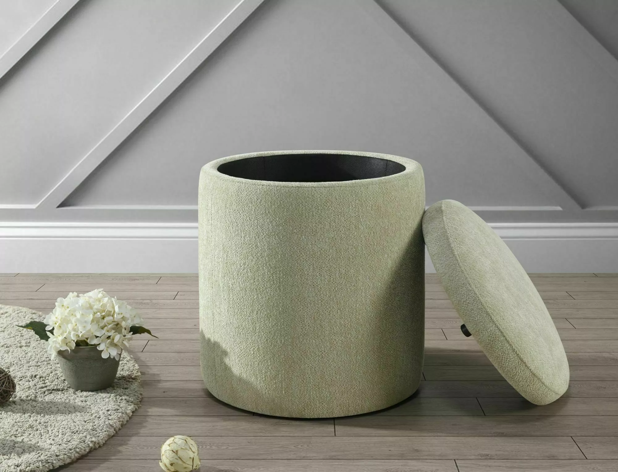 Ottoman with storage, upholstery: Raven fabric, color: dark beige.