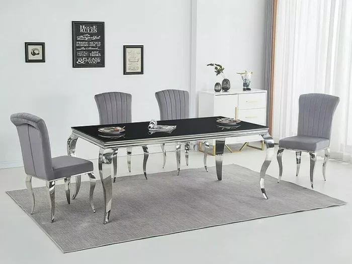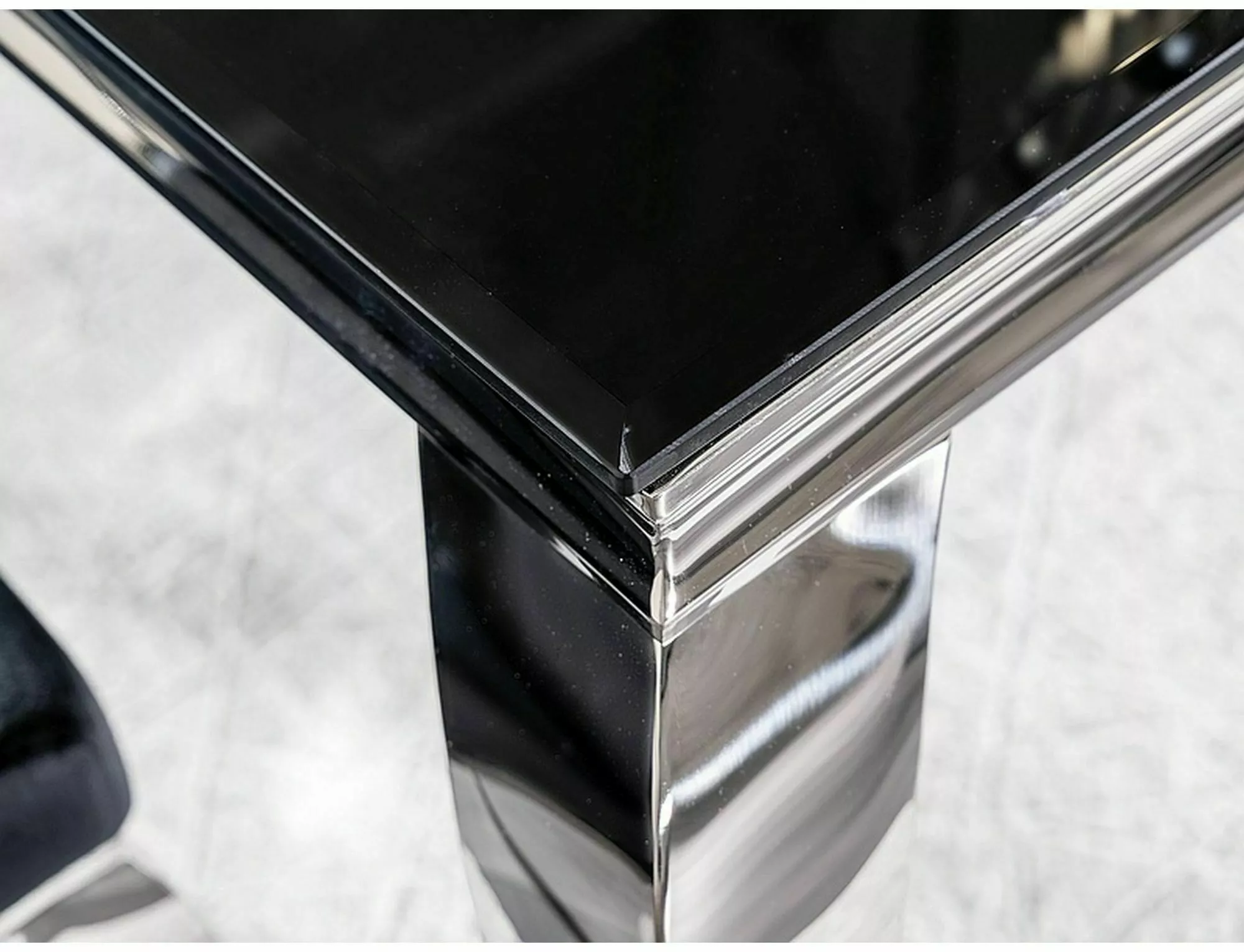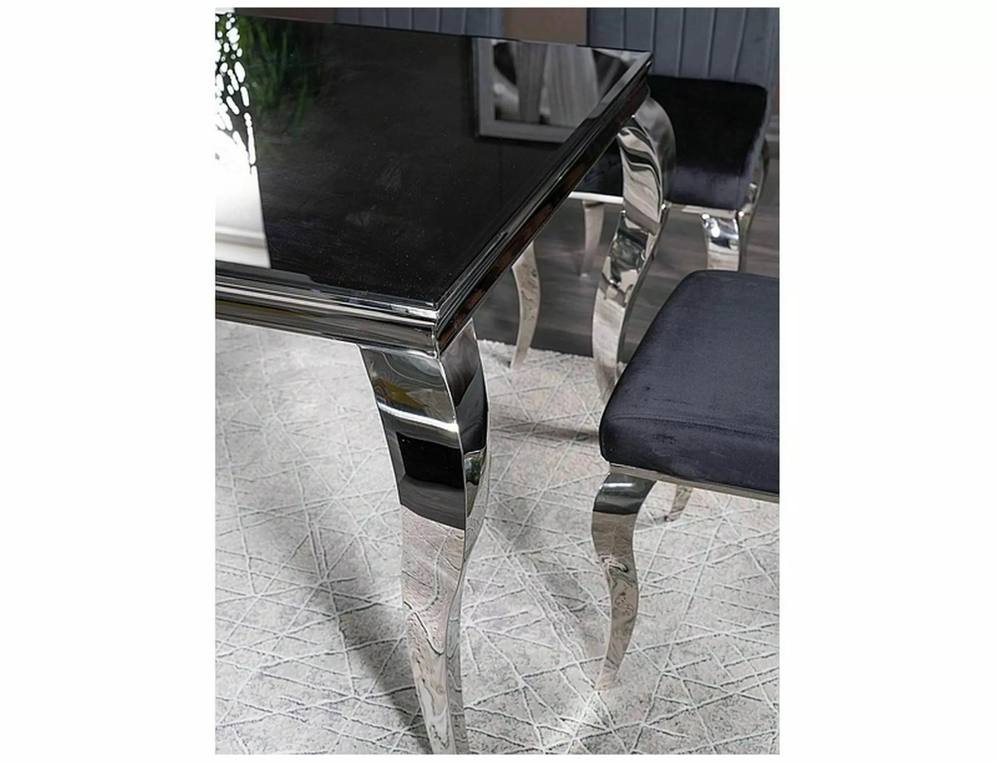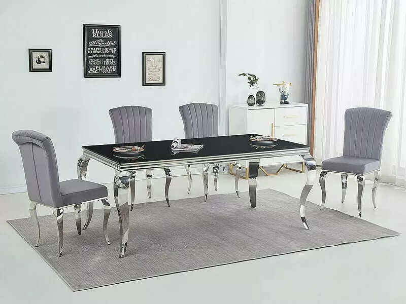 Table, top: tempered glass, frame: metal, color: black / chrome.