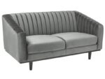 Sofa, velvet fabric, color: according to Bluvel 14 sampler – gray, wood, color: wenge. Sofa dimensions: A – 78, B – 150, C – 43, D – 60, E – 85, F – 18 cm.