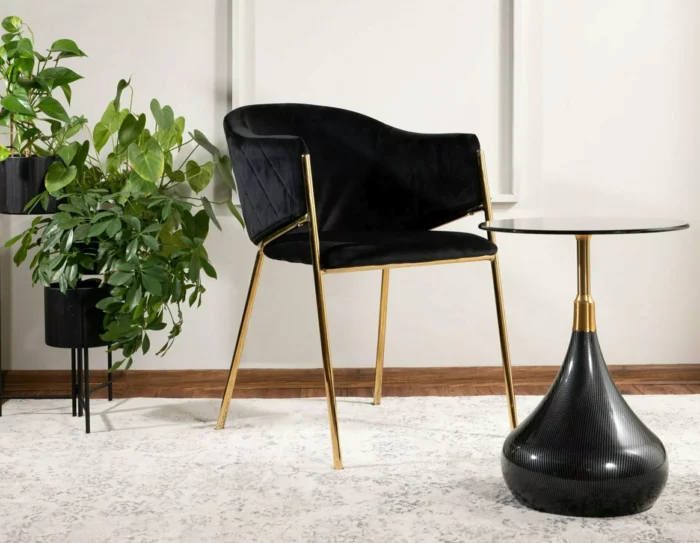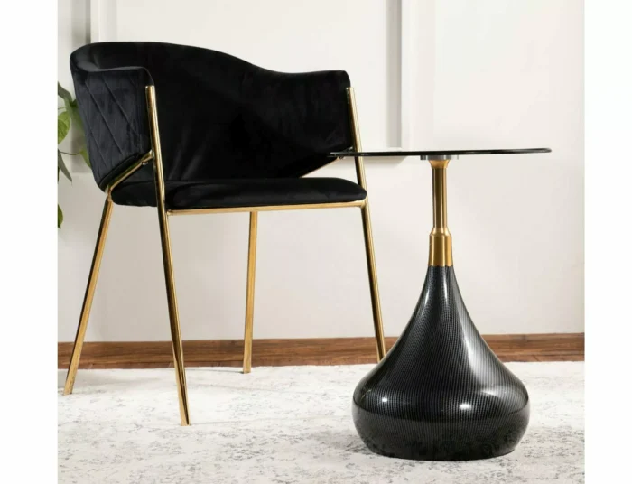 Coffee table, top: tempered glass, frame: metal, color: black / black + gold.