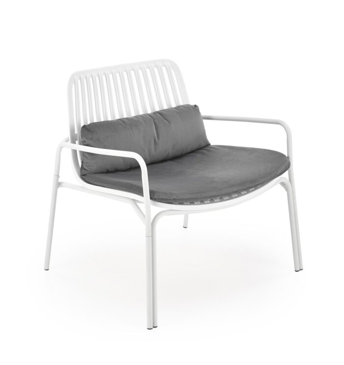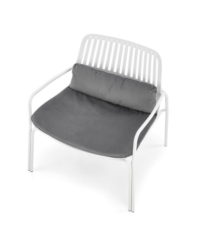 Размеры: 71/66/75/40 см, материал: ткань / порошковая окрашенная сталь / полипропилен, цвета: каркас — белый, обивка — серый
