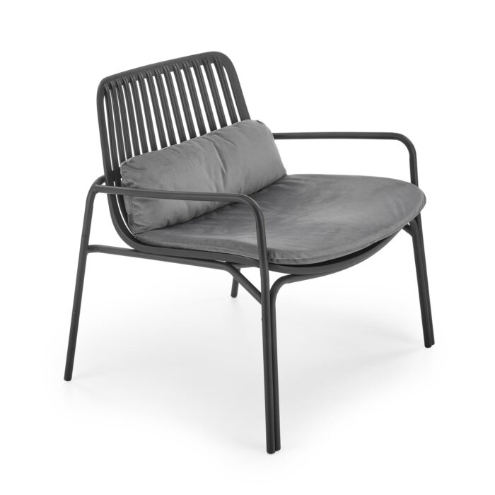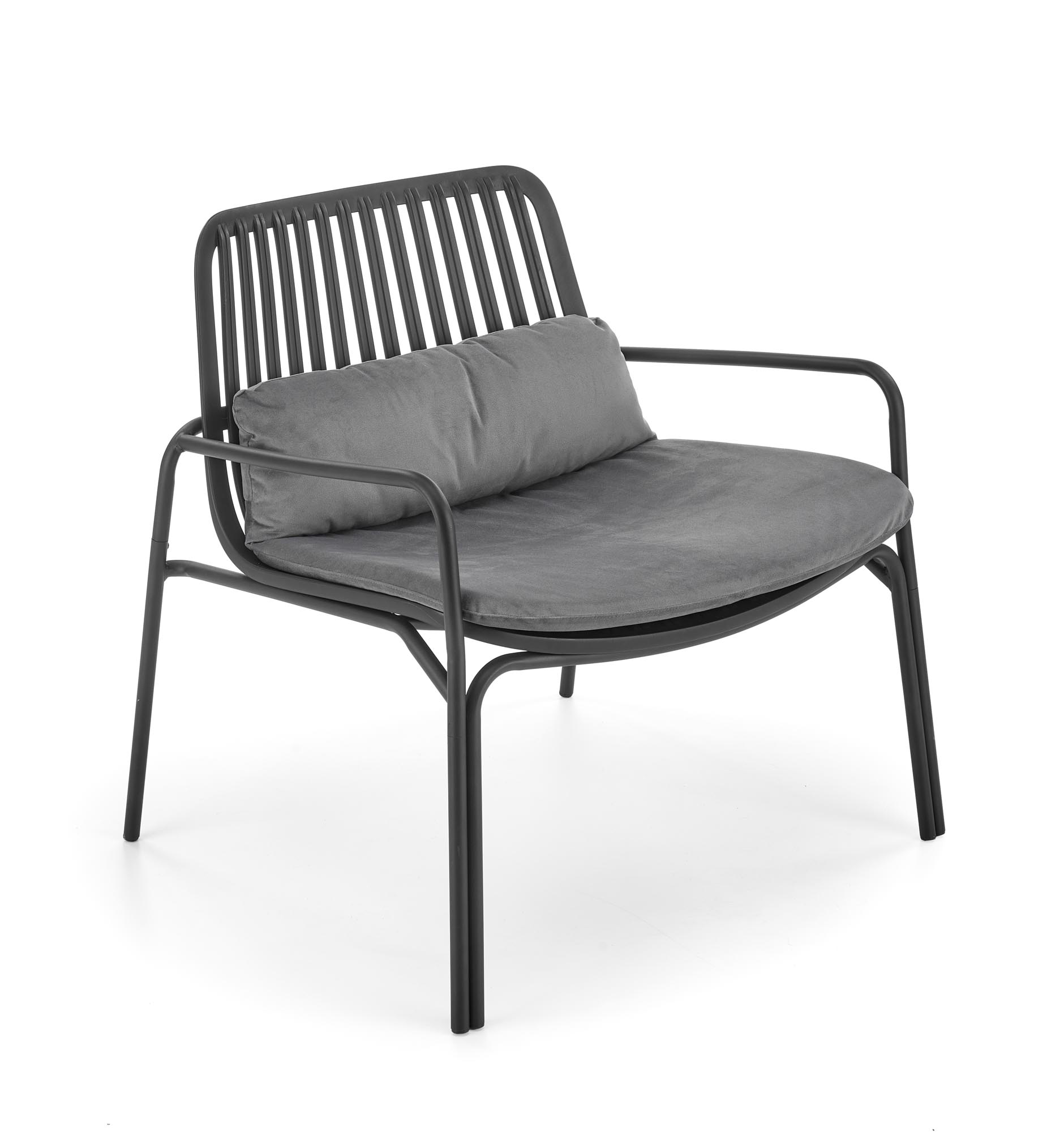 Размеры: 71/66/75/40 см, материал: ткань / сталь с порошковым покрытием / полипропилен, цвета: рама — черный, обивка — серый