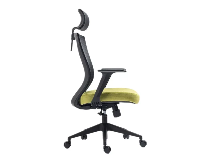 Поворотное кресло, ткань / сетка, цвет: зеленый / черный, материал каркаса, цвет: черный, мультиблок, фиксированные подлокотники, регулируемый подголовник.
