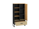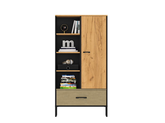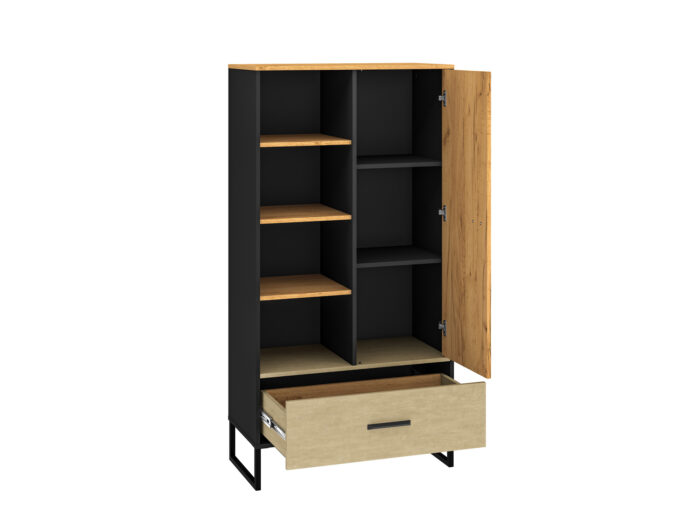 Трехдверный шкаф Colt 01 — это предмет мебели, который обеспечивает достаточное количество места для хранения. Большое пространство за двойными дверями оснащено двумя эргономичными штангами, позволяющими хранить большое количество одежды. Вторая часть шкафа состоит из удобных закрытых полок. Пять просторных отсеков обеспечивают место для всей одежды подростка. Дизайн мебели и динамичное сочетание декоров — теплый дуб Craft, сталь Premium в сыром виде и контрастный черный — подчеркивают индивидуальный стиль и характер молодых людей.