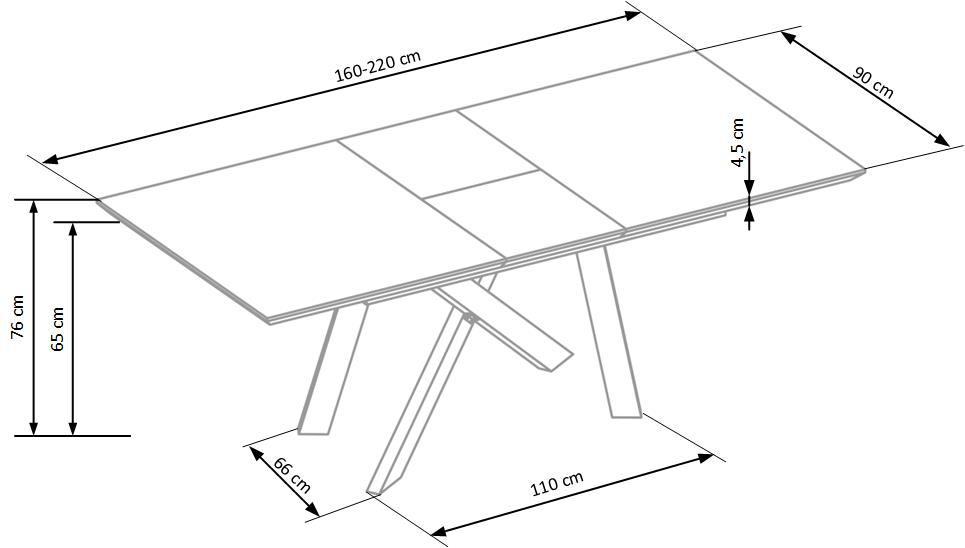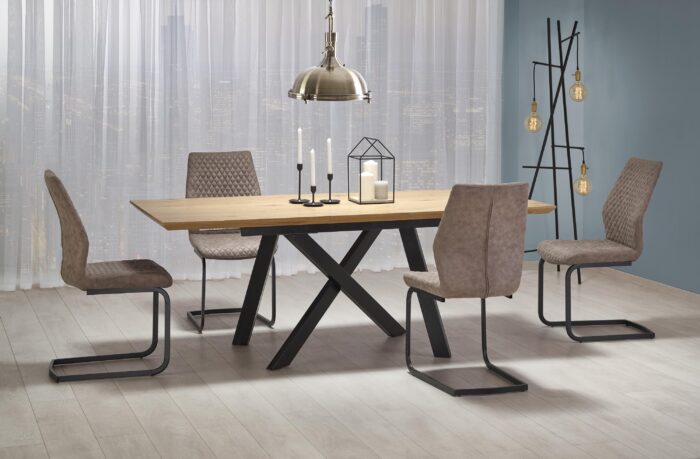 Выдвижной стол, размеры: 160-200/90/76 см, материал: ламинированная МДФ / сталь с порошковым покрытием, цвет: золотой дуб / черный
