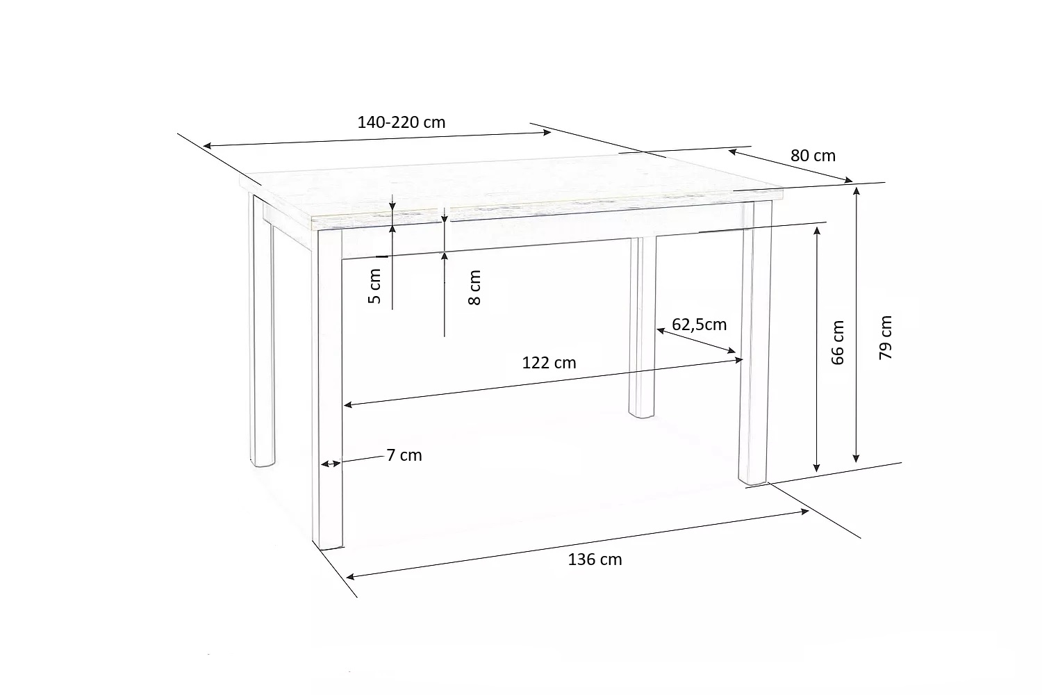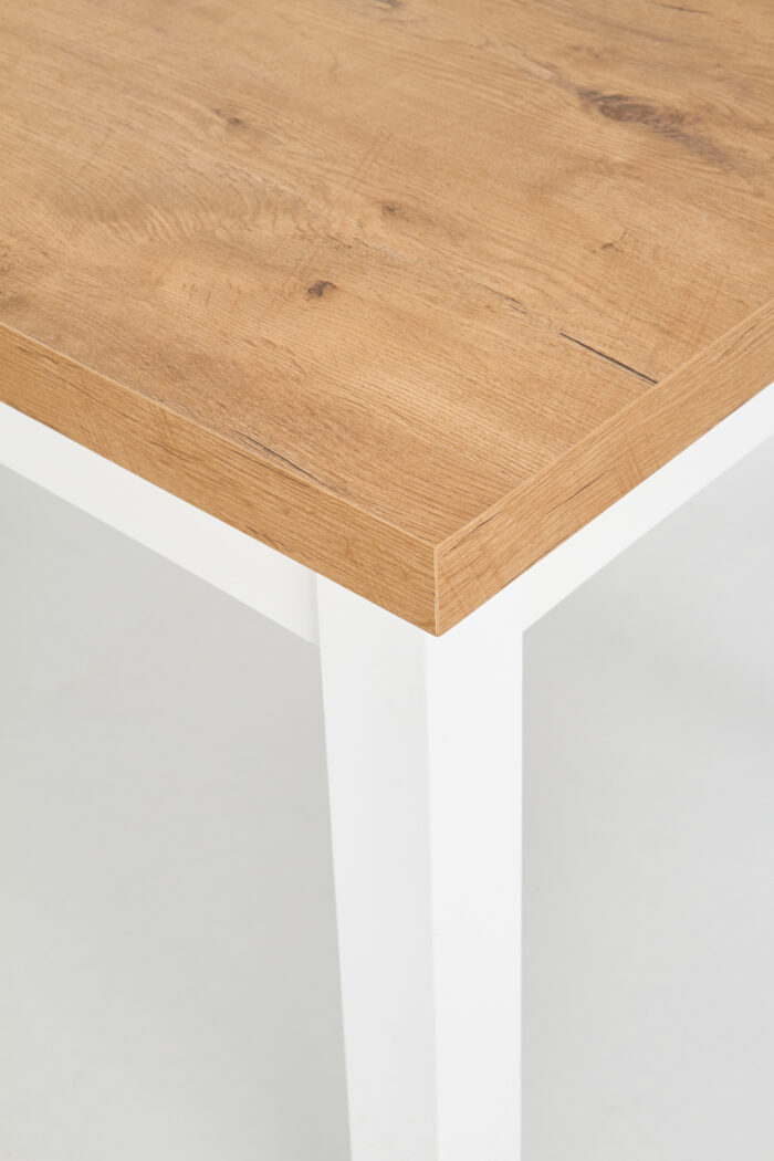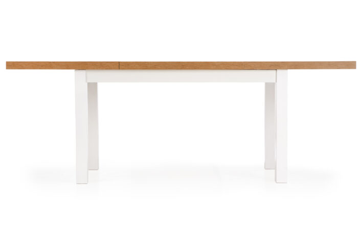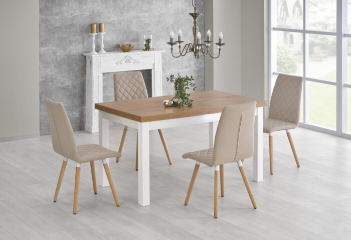 Стол с расширением, размеры: 140-220/80/76 см, материал: столешница — ламинированная ДСП, ножки — массив бука, цвет: столешница — дуб ланселот, ножки — белый